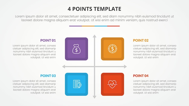 4-punkts scenmallinfografikkoncept för bildspel med rund lådrektangel 4-punktslista med platt stilvektor