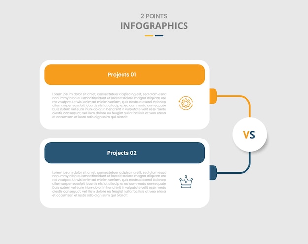 Jämförelse mellan 2 punkter kontra för infographic med rund boxbehållare med staplad listlinjeanslutning med släpskugga med tvåpunkts listinformation