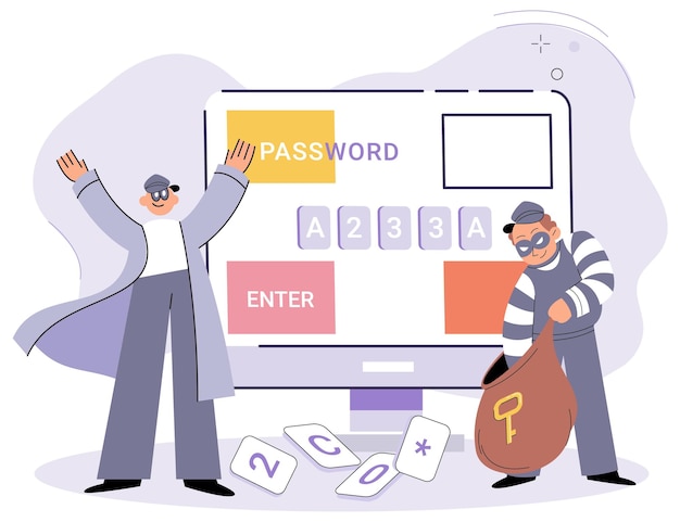 Cyberbrottsling med bärbar dator stjäl användarens personuppgifter. Hackerattack och webbsäkerhet. Internetnätfiske koncept. Hacker med pengarpåse som försöker cyberattack. Programmeringskod lösenordsknäckning.