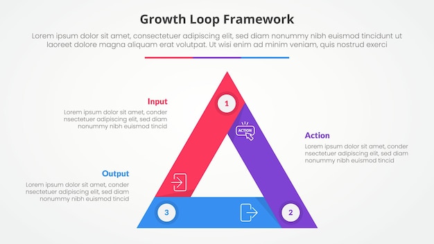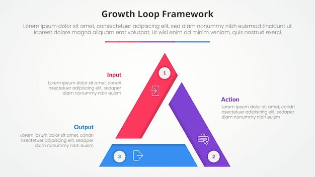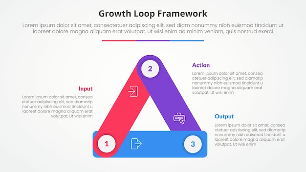 Tillväxtloop ramverk infographic koncept för bildpresentation med triangelcykel cirkulär vass kant med 3 punktslista med platt stil
