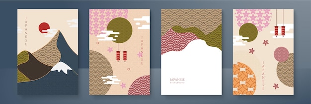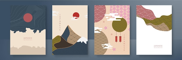 Japansk bakgrund med linjevågmönstervektor Abstrakt mall med geometriskt mönster Bergs layoutdesign i orientalisk stil Vektor grafisk design banner mönster bakgrund webbmall