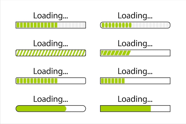 Indikatorer för laddningsfält indikerar framsteg. Laddningsfältikoner. Systemprogramuppdatering och uppgraderingskoncept. Nedladdningsförlopp. Samling av laddningsstatusladdningssymbol