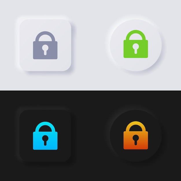 Ikonuppsättning för hänglåsknapp Flerfärgad neumorfismknapp Mjuk UI-design för webbdesign Applikations-UI och mer Knappvektor