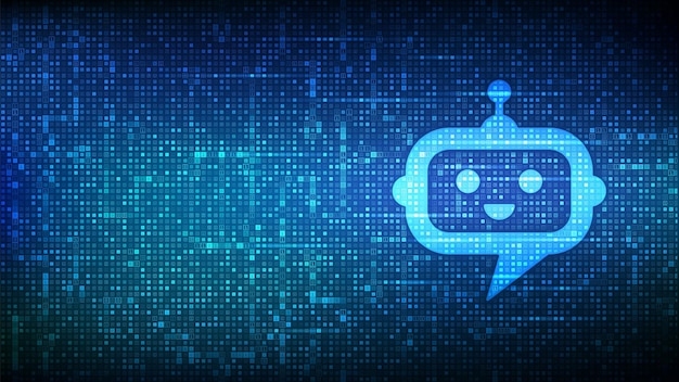Robot chatbot huvud ikon tecken gjord med binär kod. Chatbot assistent applikation. AI-koncept. Digital binär data och streaming digital kod. Matrisbakgrund med siffror 1.0. Vektor Illustration.