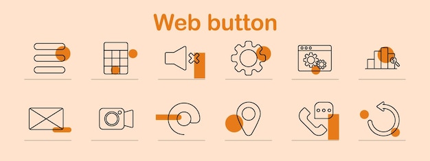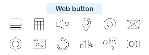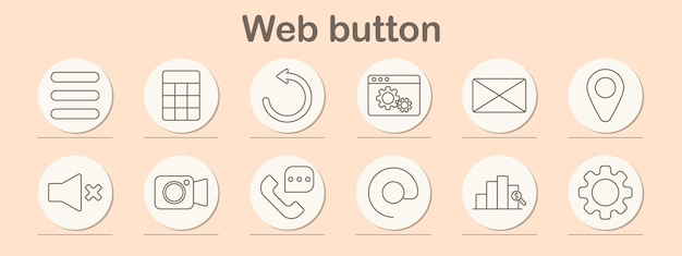 Webbknapp set-ikon Ljud av platsmeny e-postinställningar ladda om grafanalys telefon kamera navigering gränssnitt kommunikationsdatakonfiguration